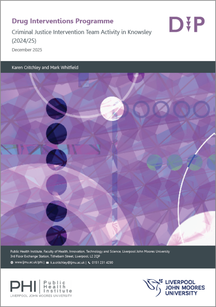 Criminal justice data are monitored via the online system, Criminal Justice Interventions Team Data Entry Tool (CJIT DET), collected on a CJIT DET form. We monitor criminal justice data covering each of the five areas across Merseyside (Knowsley, Liverpool, Sefton, St Helens and Wirral). Furthermore, we collect and report on drug testing data provided by Merseyside police, data from Liverpool Restrictions on Bail sites and other criminal justice sources in Merseyside.